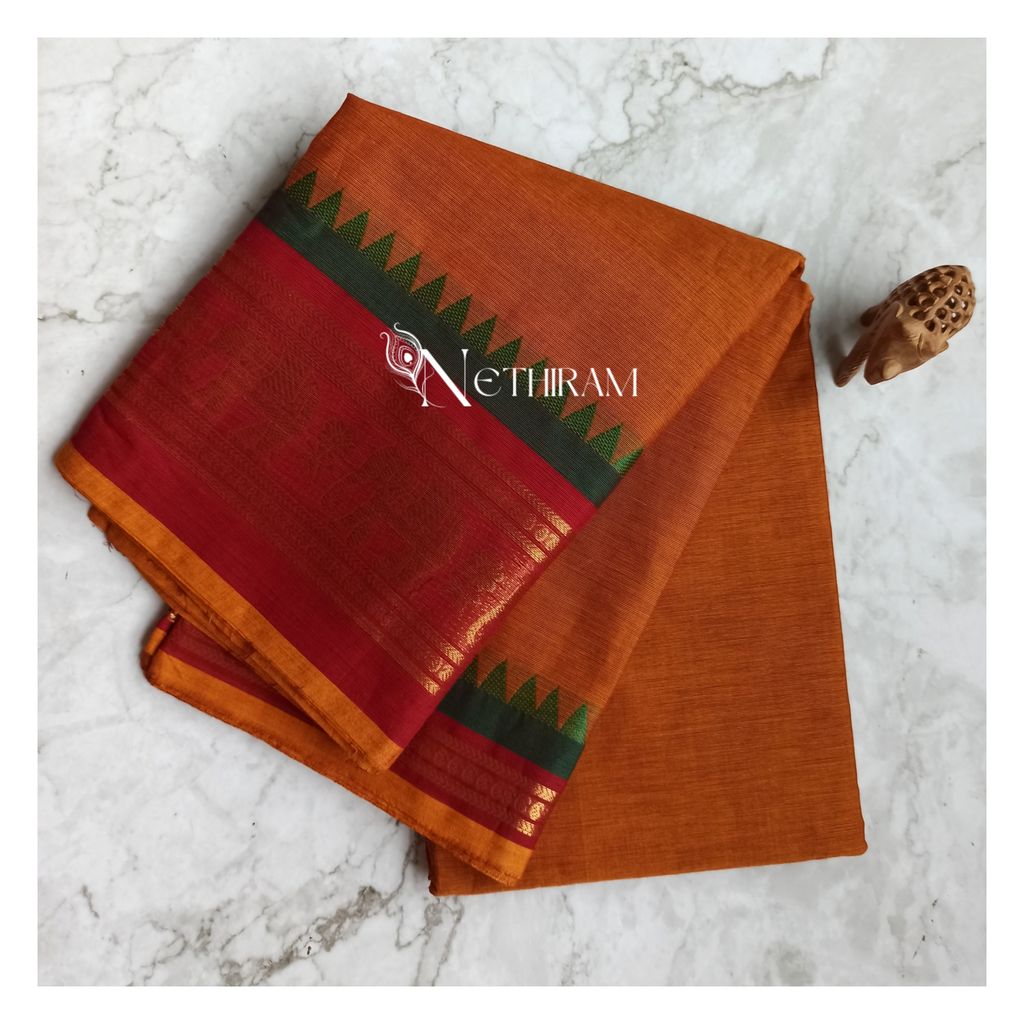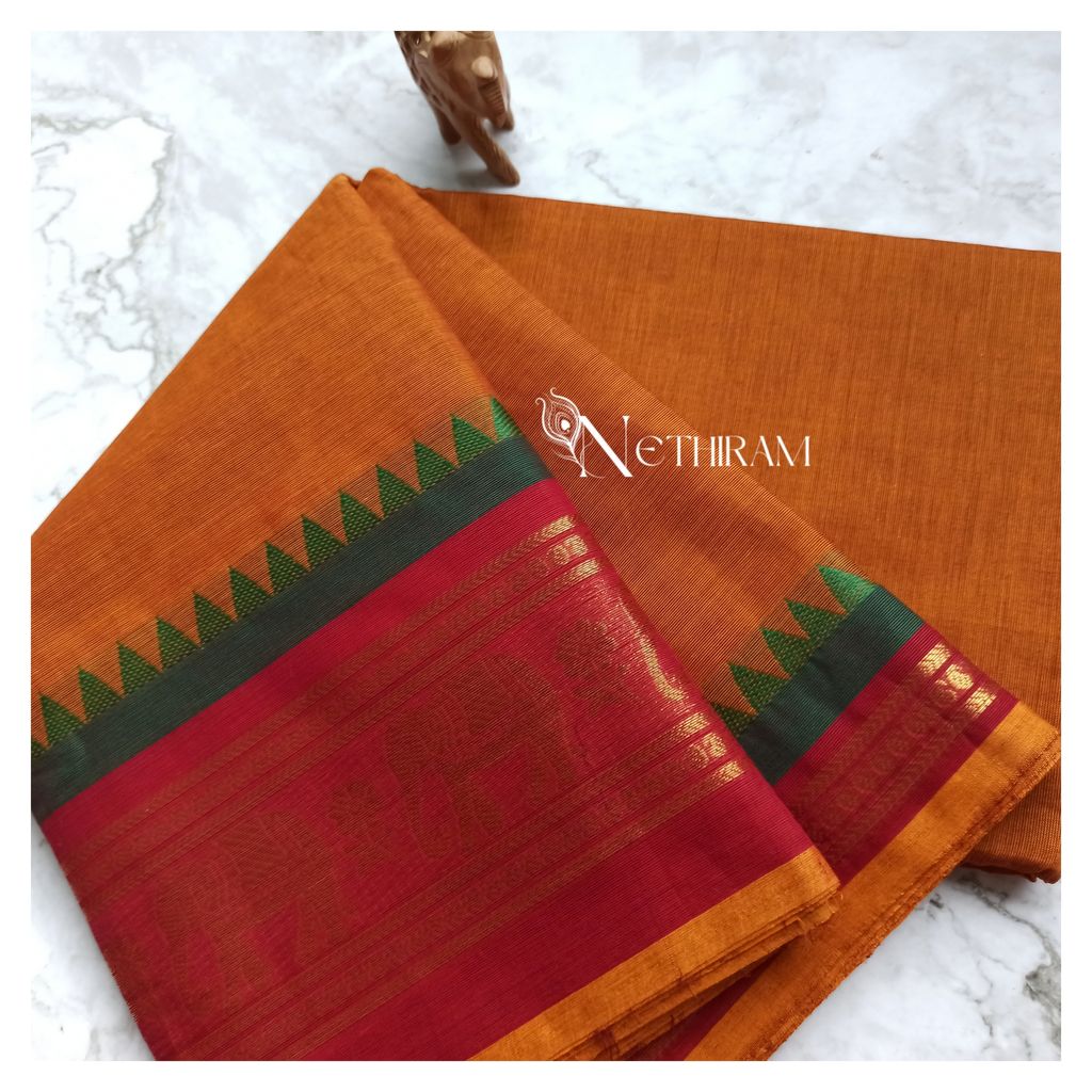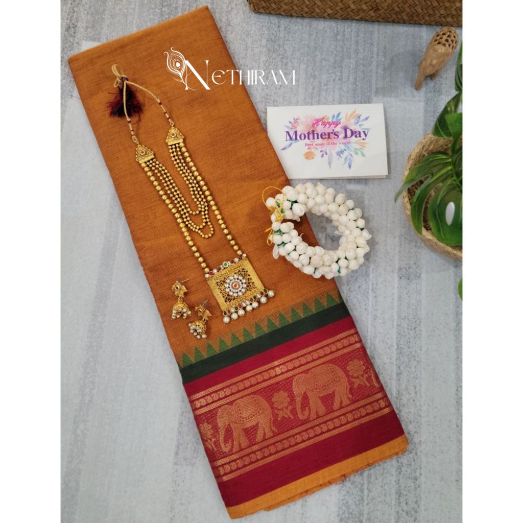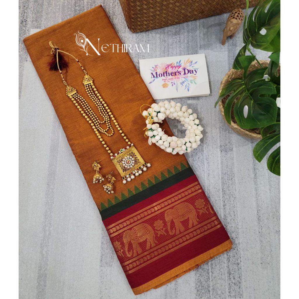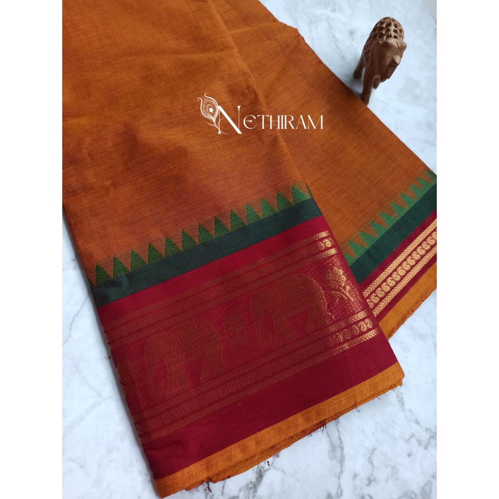 Chettinad cotton saree with elephant border