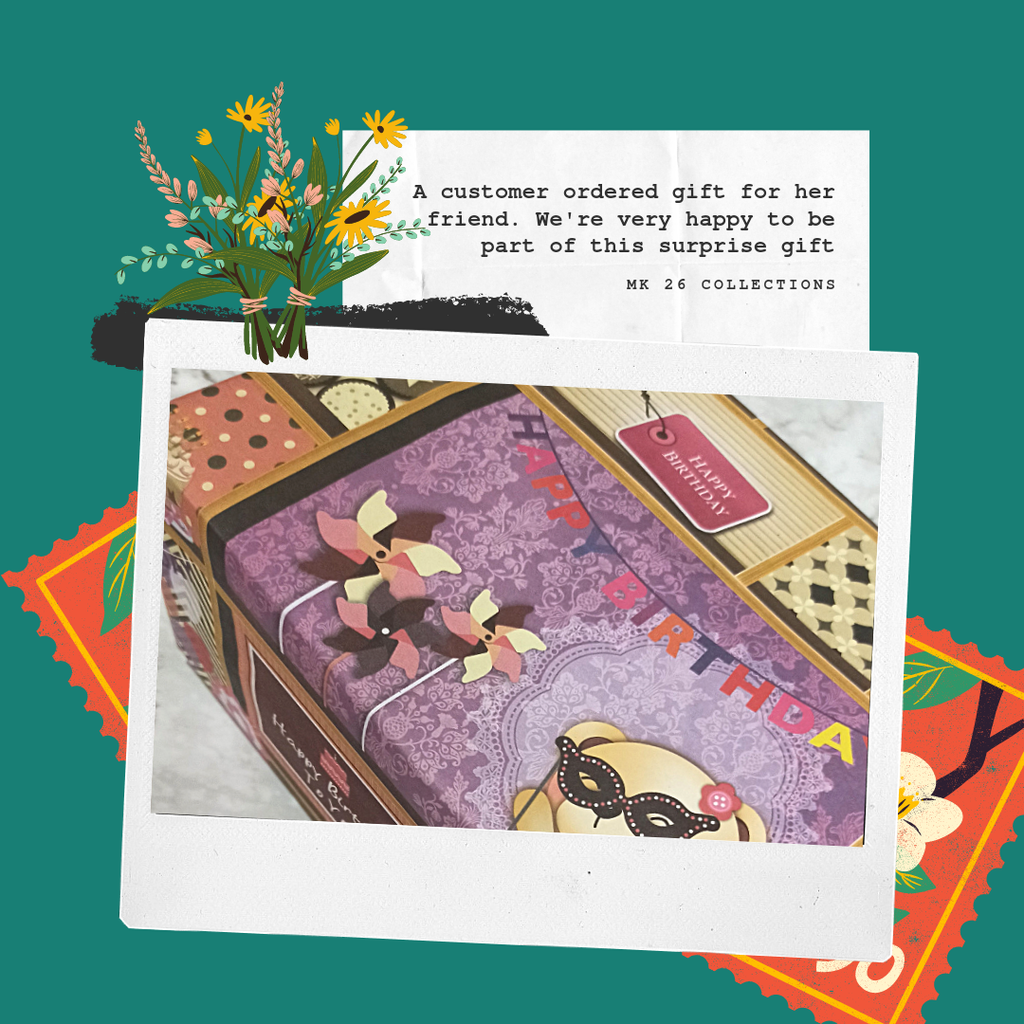 We provide gift wrapping and greeting card attachment to your gifts now. Kindly remark the occasion and insert your note. You can also reach to us via email at mkcollections26@gmail.com