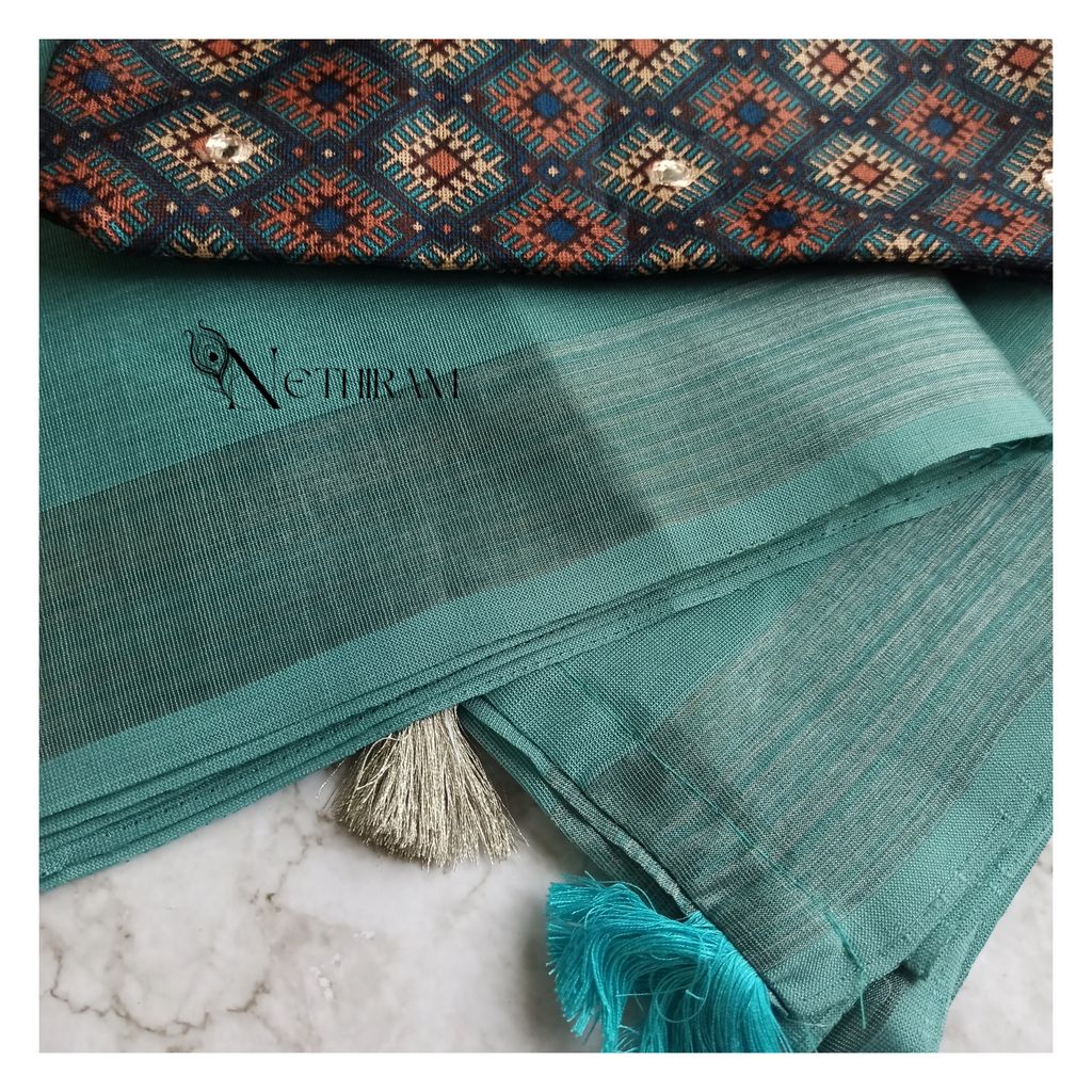 Plain linen saree with zari border work