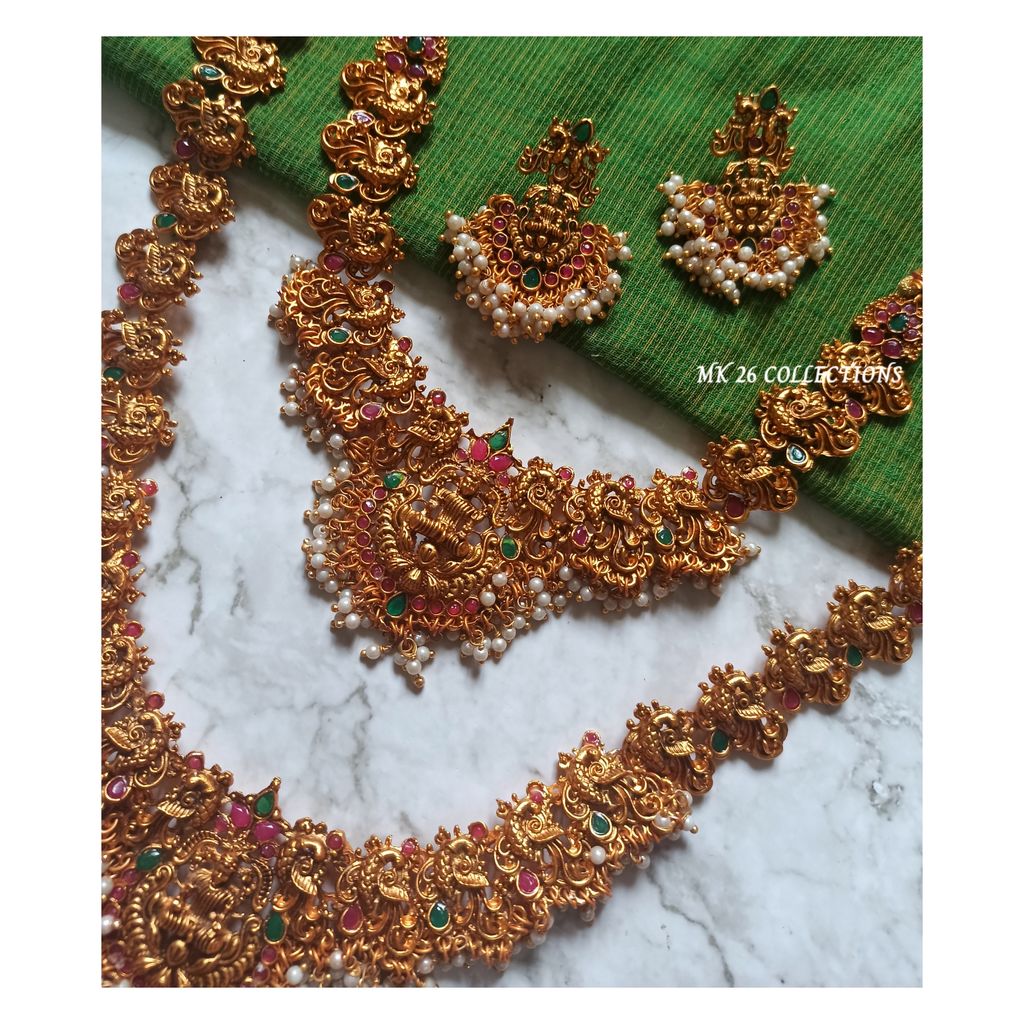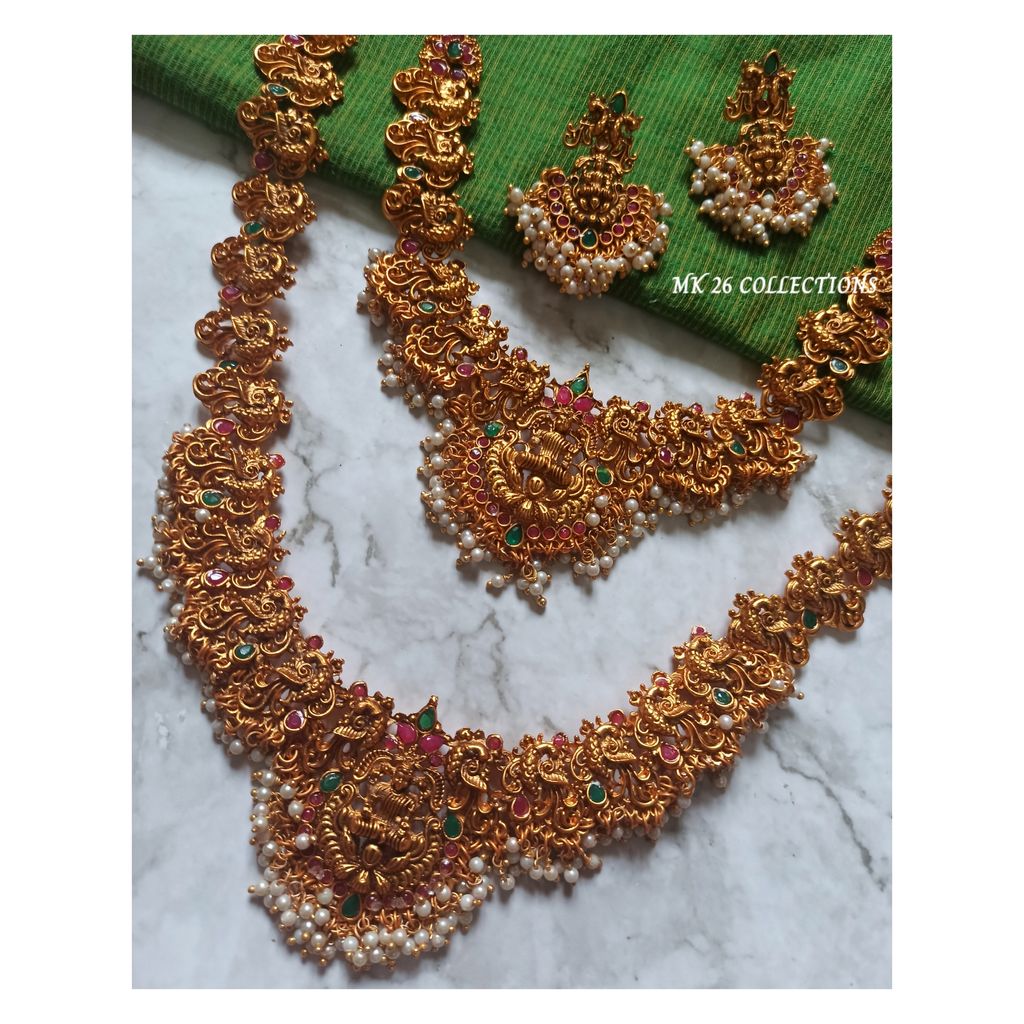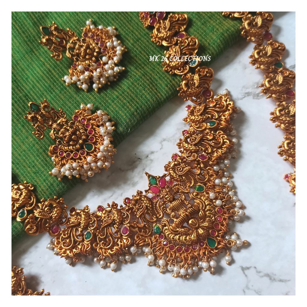 With pearls, red and green stone