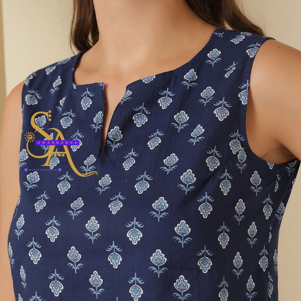 Sleeveless short blue kurti